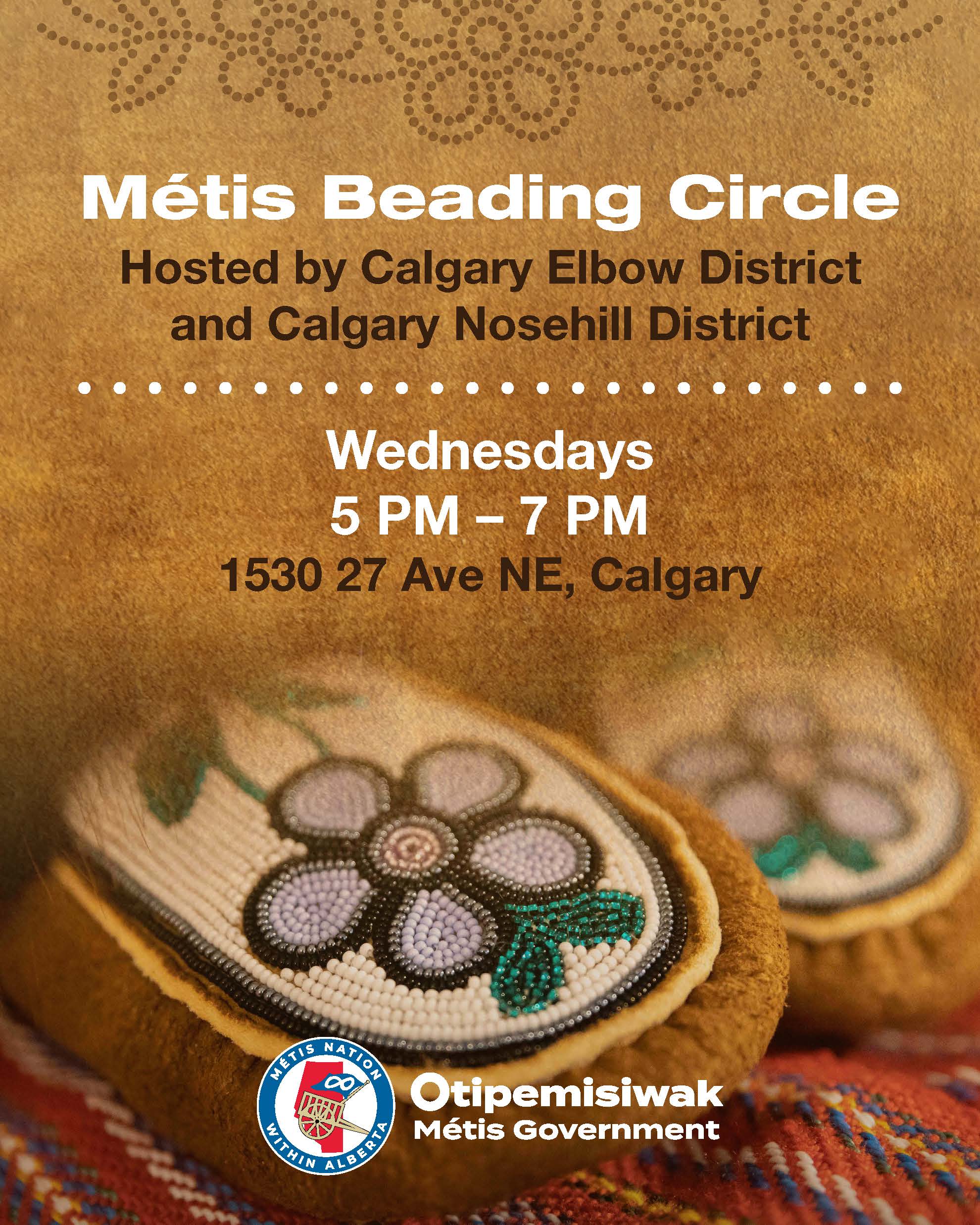 The Calgary Elbow and Calgary Nose Hill Métis Districts invite all Métis citizens to join us for a weekly evening of beading, creativity, and community connection.